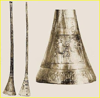 En 1922 lors de la découverte du tombeau de Toutankhamon, Howard Carter trouva parmi les trésors qui étaient enfouis avec le pharaon, deux trompettes.
