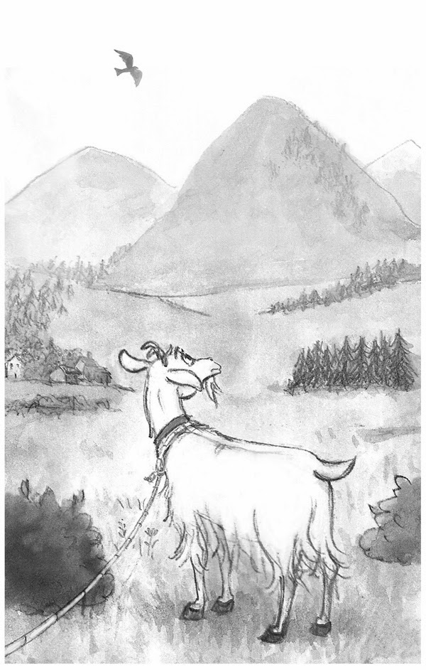 – Comme on doit être bien là-haut! Quel plaisir de gambader dans la bruyère, sans cette maudite longe qui vous écorche le cou!… C’est bon pour l’âne ou pour le boeuf de brouter dans un clos!… Les chèvres, il leur faut du large.